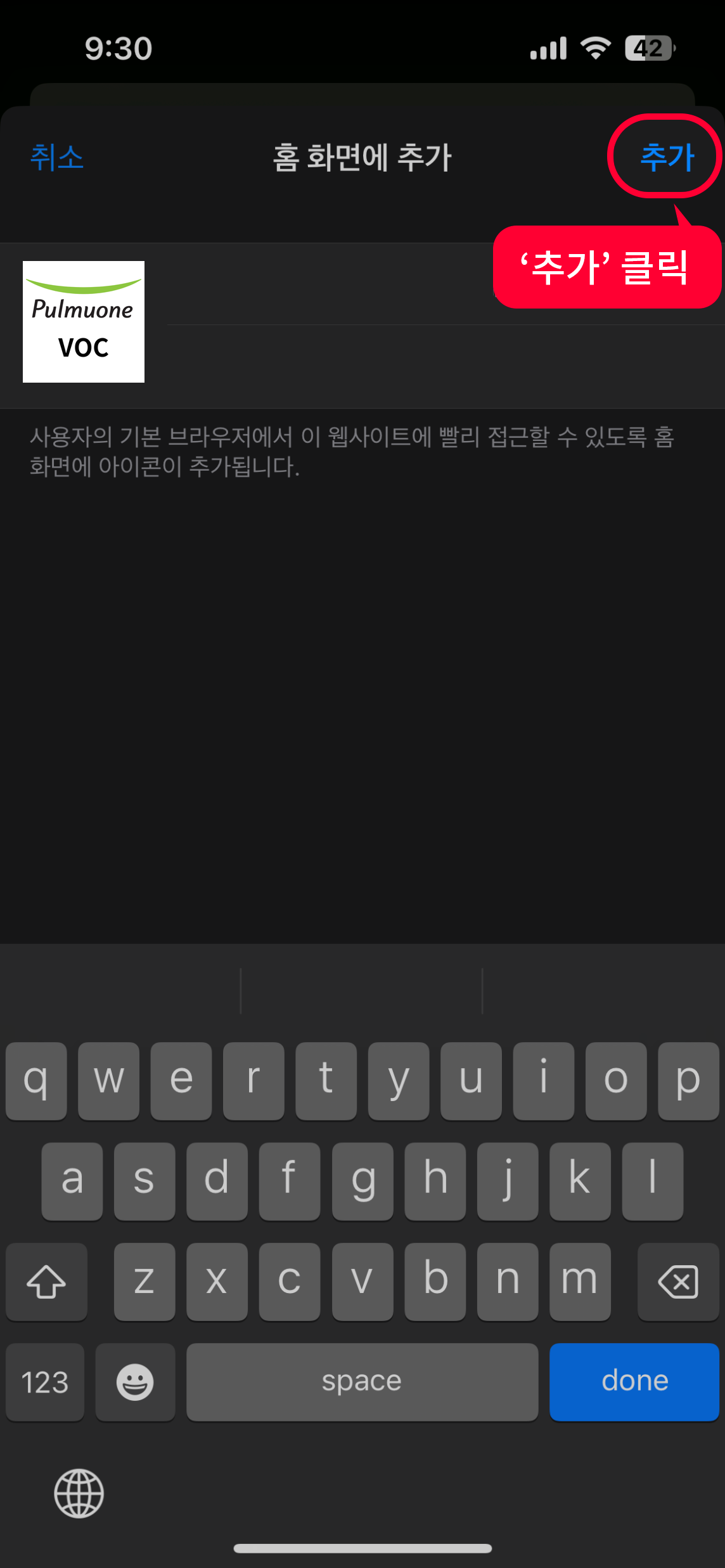 를 눌러 홈 화면에 추가해줍니다.